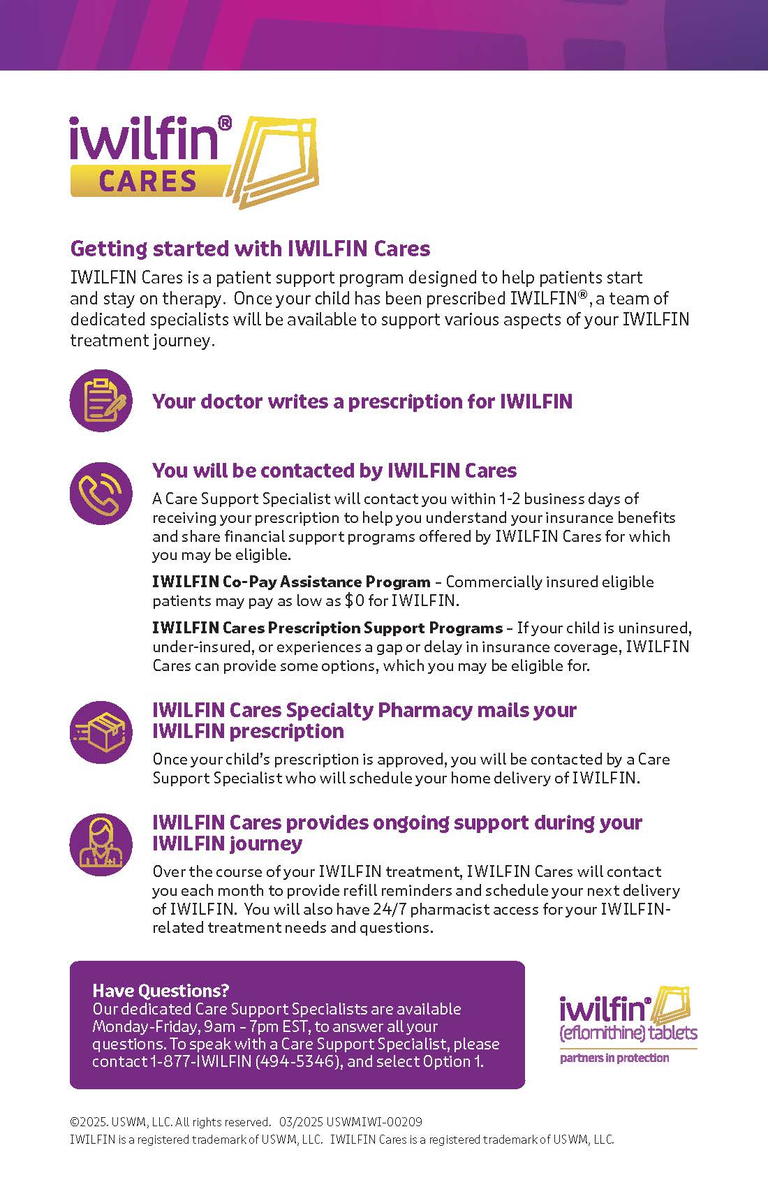 IWILFIN Cares® provides comprehensive support services to help your patients start and stay on therapy.